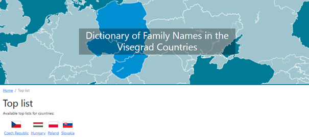 Celem projektu było stworzenie ogólnodostępnego słownika online, zawierającego informację o genezie, typologii i najczęstszych wariantach dwustu nazwisk o najwyższej frekwencji z każdego z czterech krajów. Słownik przygotowano w językach angielskim, węgierskim, polskim, czeskim i słowackim. Pozwoli on niespecjaliście na zdobycie wiedzy o pochodzeniu danego nazwiska, a także umożliwi badaczom prowadzenie studiów porównawczych nad nazewnictwem osobowym wszystkich czterech krajów, jak również prześledzenie możliwych zapożyczeń w obrębie czterech przestrzeni nazewniczych.